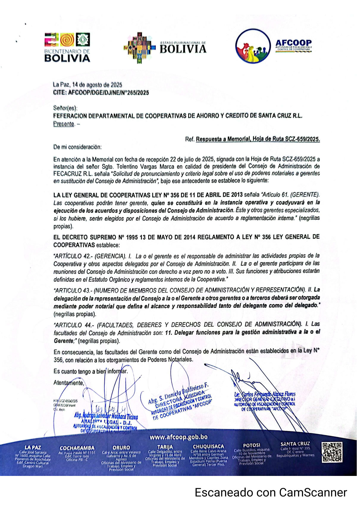 En asamblea realizada en fecha 18 de julio de 2025 en predios de la Cooperativad...