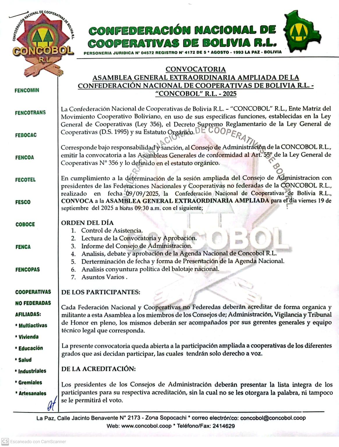 En asamblea realizada en fecha 18 de julio de 2025 en predios de la Cooperativad...